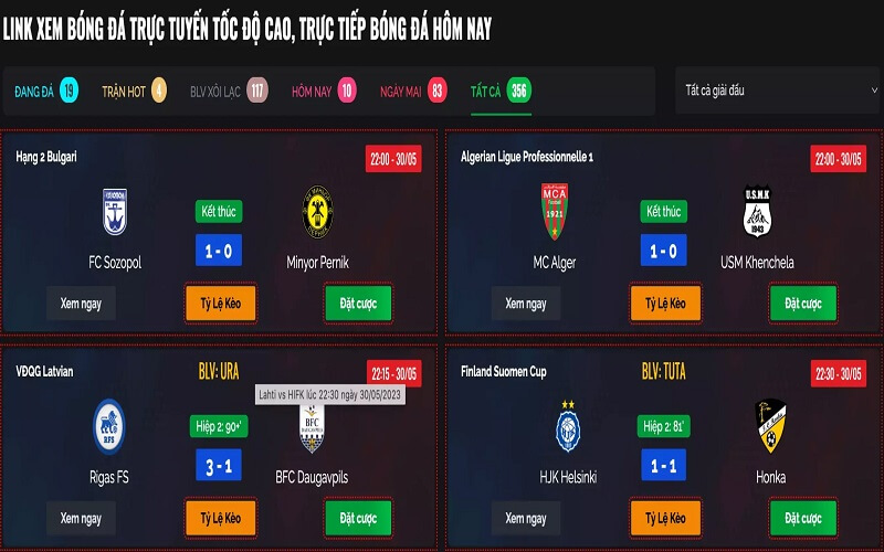 Chuyên trang cung cấp cho người hâm mộ bóng đá những trận đấu từ các giải vô địch quốc gia lớn như Ngoại Hạng Anh, La Liga, Serie A, Bundesliga, Ligue 1, đến các giải đấu quốc tế hấp dẫn như UEFA Champions League, Europa League, World Cup, Euro và nhiều giải đấu khác. Mọi trận đấu, từ các trận đấu hàng đầu đến các giải đấu nhỏ lẻ, đều được cập nhật nhanh chóng.